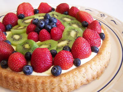 Lets get a few things strait. No, I don’t hoverin the kitchen all day thinking of the next thing I can bake (Yes, I do that….but not in the kitchen) I’m actually quite a busy person. I also don’t create fabulous desserts for no reason at all. I always have a legitamite excuse to create something yummy. Today for example. Fruit Tart Fabulous! We had a “dinner guest” coming over, but unfortunately our guest was stricken with sickness. However, before I was aware of this I had created a Fruit tart. What is better for a dinner party then a fruit tart? We will have to savor this dessert ourselves….ohh no!
