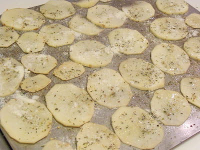 Well, I’ve always had a desire to make my own potato chips. I mean, how fun is that! Well, it makes me happy anyway. Plus, baking your own potato chips is an excellent way to keep the healthier…plus if you have a few hours to kill…or if you are stranded in your house with a potato and an oven…or if you are too cheap to pay for a 25 cent bag of potato chips. These are all excellent reasons why you would want to make these little circles of delight.